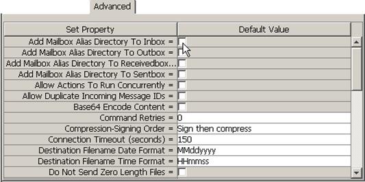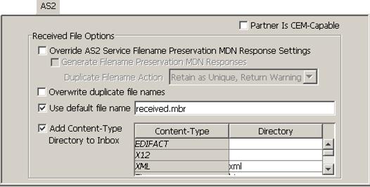 The Add Content-Type Directory to Inbox checkbox allows for sorting of incoming messages based on the content-type of the message to a subdirectory (under the Inbox specified on the General tab for the Host). You specify each of the content-types that you want directed to specified subdirectories by entering a name in the Directory field. Directory entries may be made for content-types of: EDIFACT, X12, XML, Binary, Plain Text, and Other (a default catch-all for messages with all other content-types you may receive.) The same subdirectory may be used for multiple content-types. You may also leave 'Directory' entries blank which will cause any received messages for that specific 'Content-Type' to be stored in the Inbox specified on the General tab.
