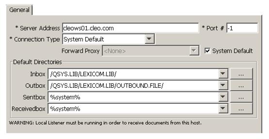 On the 'General' tab, specify just the library for the "Inbox" value where the "Content-Type" files will be created. In this example, we have used /QSYS.LIB/LEXICOM.LIB/: